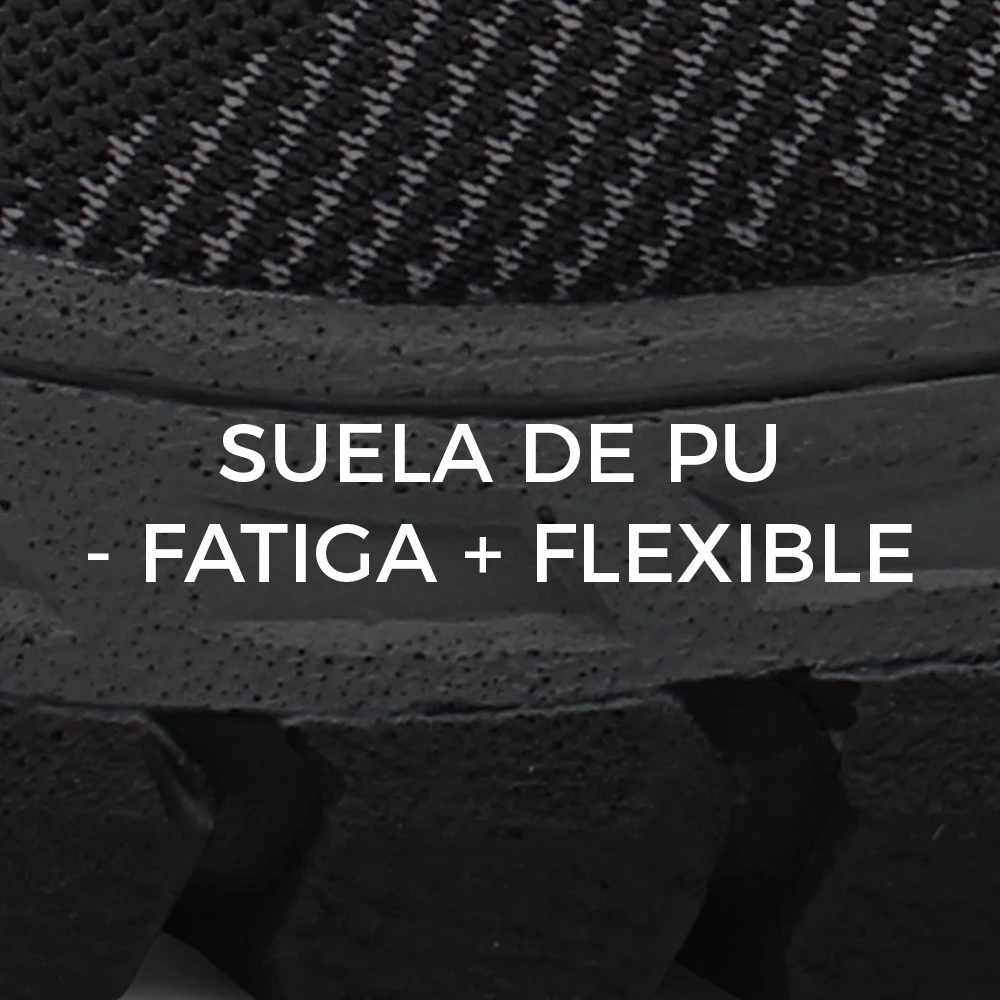 Calzado de seguridad fabricado en corte textil poliéster flexible, transpirable y ergonómico.