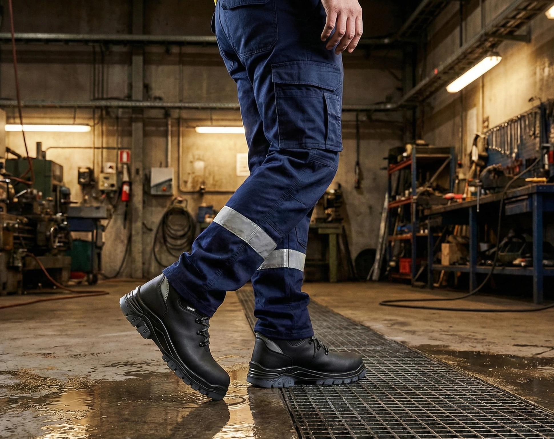 Calzado de seguridad en piel corte vacuno calibre 20 – 22 tipo napa + aplicación reflejante.