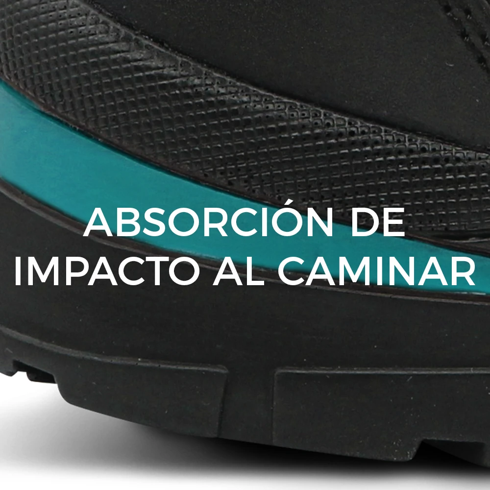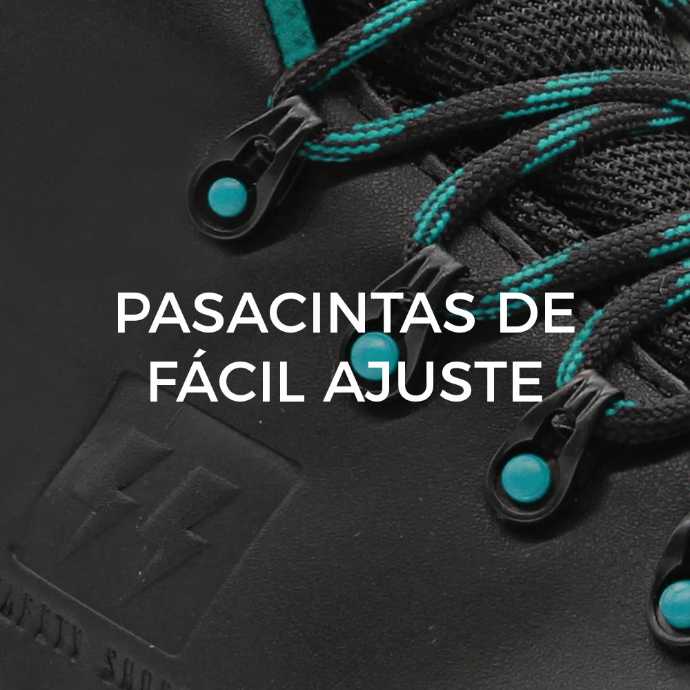 Forros internos en material textil transpirable, plantilla ergonómica en espuma de poliuretano 7 mm con perforaciones, casco de policarbonato más ligero y resistente a impactos y compresiones.