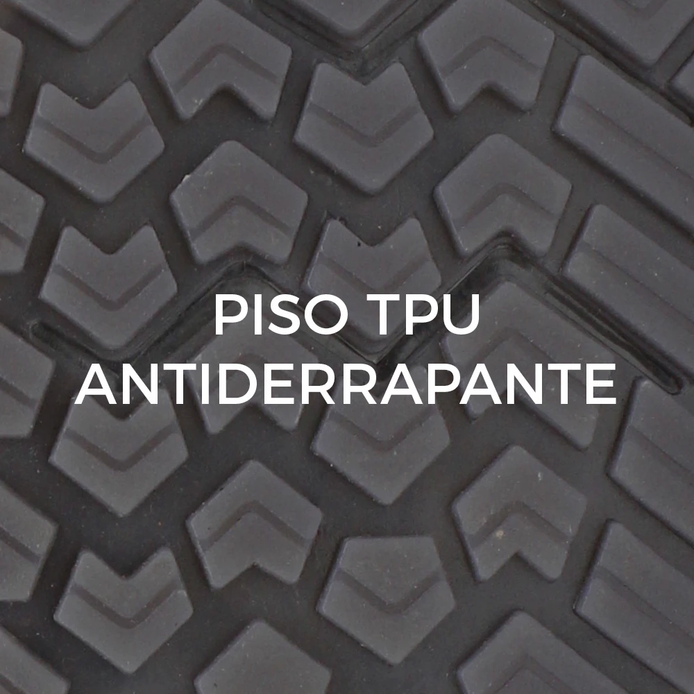 Suela doble densidad en phylon + TPU antiderrapante con buena resistencia a la abrasión moderada y agarre en pisos secos y mojados.