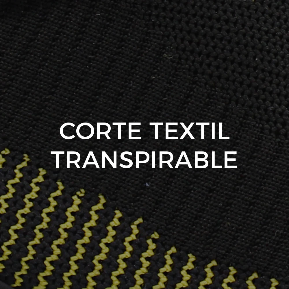 Calzado de seguridad fabricado en corte textil poliéster flexible, transpirable y ergonómico.