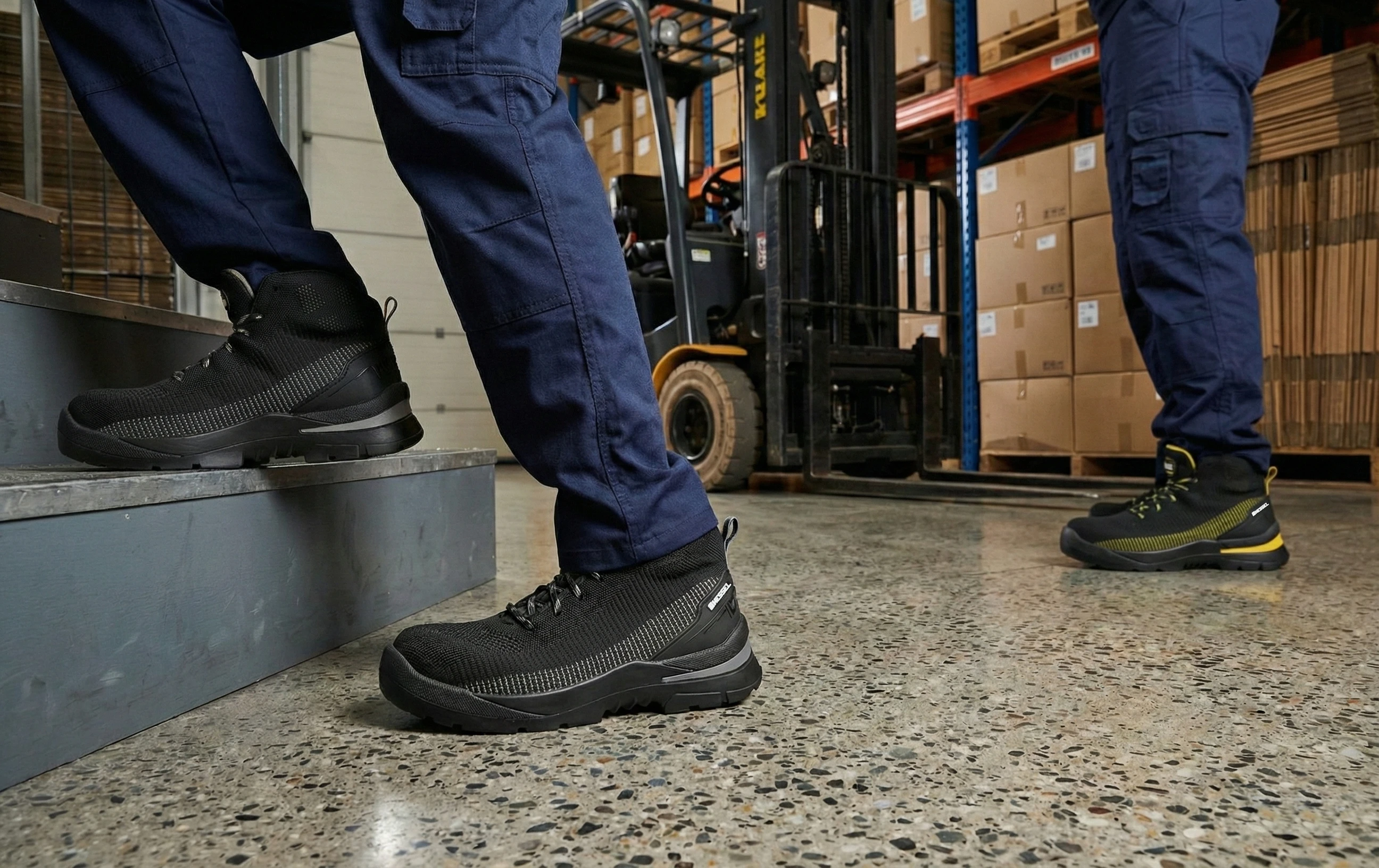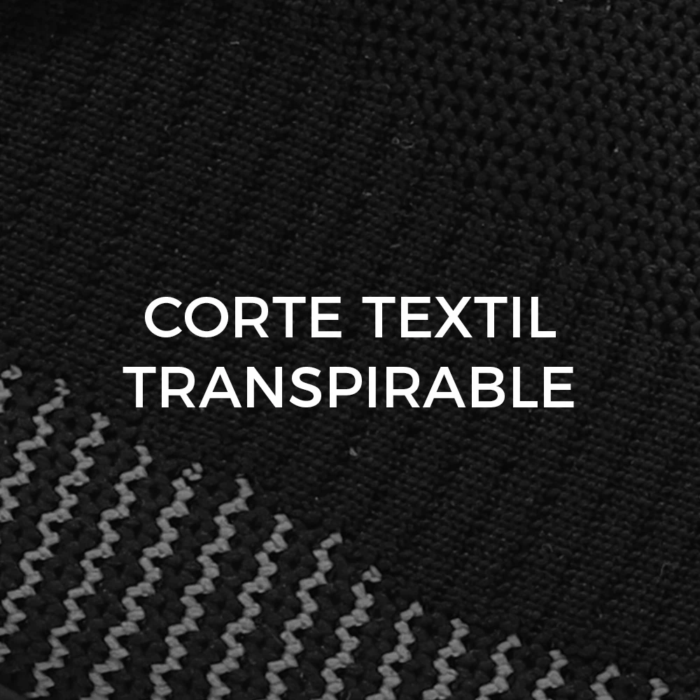 Calzado de seguridad fabricado en corte textil poliéster flexible, transpirable y ergonómico.