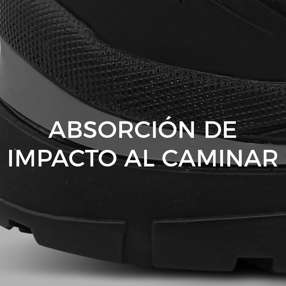 Suela de poliuretano con buena resistencia a la abrasión moderada y agarre en pisos secos y mojados en baja concentración. No recomendado en entornos con agua o líquidos abundantes.